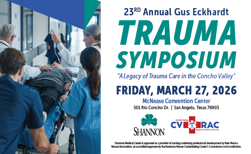 Shannon Medical Center invites all Physicians, Physician Assistants, Advanced Practice Nurses, Nurses, and EMT’s and Paramedics seeking to enhance their knowledge and skills in caring for and managing trauma patients to attend this free, one-day program. Registration is free and limited to the first 200 registrants.